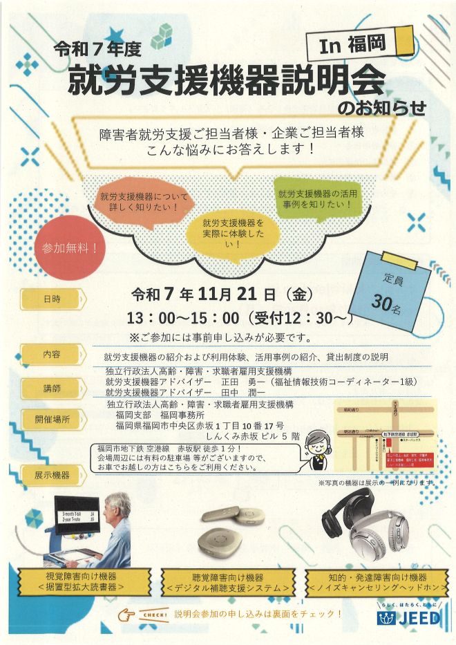 会場:独立行政法人高齢・障害・求職者雇用支援機構福岡支部福岡事務所(福岡市)