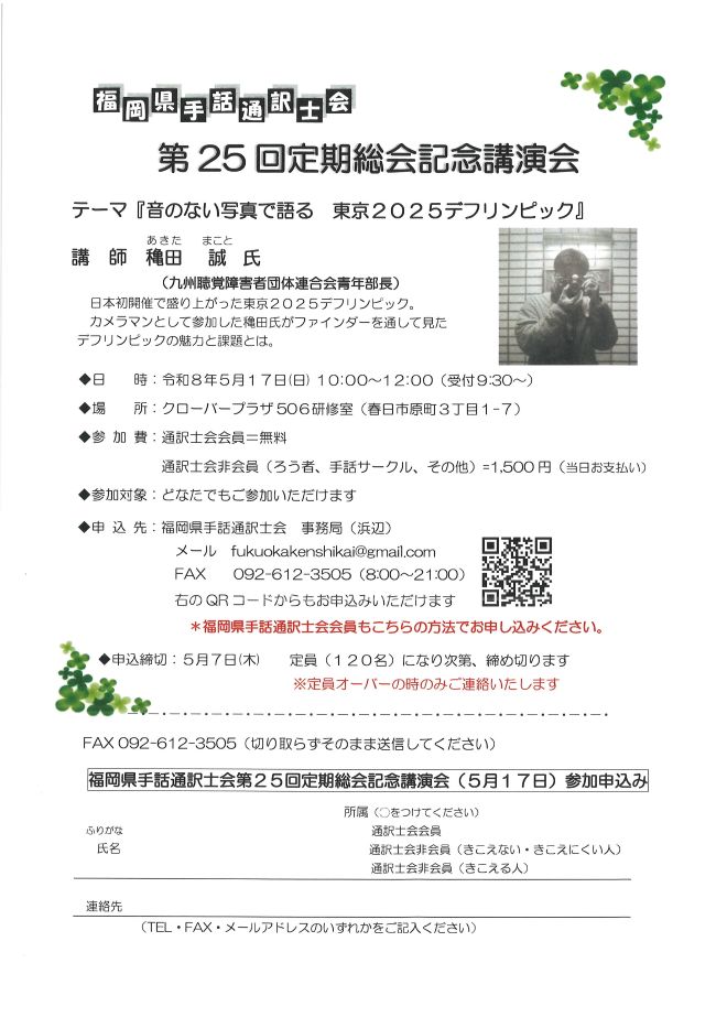問合せ先福岡県手話通訳士会fax092-612-3505(8:00~21:00)